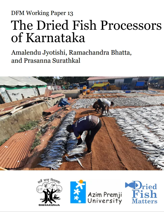 The recently released Dried Fish Matters (DFM) Working Paper 13, “The Dried Fish Processors of Karnataka,” looks at the dynamics of Karnataka’s dried fish processing industry. The report is rich with figures that summarize the Karnataka Team’s data while reflecting on the implications of their findings about dried fish processing in the state. Led by researchers Amalendu Jyotishi, Ramachandra Bhatta, and Prasanna Surathkal, it sheds light on a tradition deeply rooted in Karnataka’s coastal heritage. The report is based on structured interviews with 271 processors in the state’s three coastal districts. It discusses the intricacies of dried fish production in relation to seasonality, geographical variation, primary species involved, and the crucial role played by women. Women constitute a staggering 95 percent of the surveyed processors! Mangaluru emerged as the primary production site, and anchovies and mackerel were the predominant species, constituting a substantial share of the total dried fish production volume. The study found dried fish producers to be predominantly necessity-driven entrepreneurs and shed light on processors’ socioeconomic challenges that often hinder their businesses’ growth.