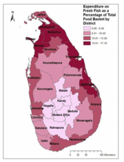 Average proportion of fish product sold and consumed per household by product type, fishing/farming village type, in 2002-2003. Source: data from Rab et al. 2006.