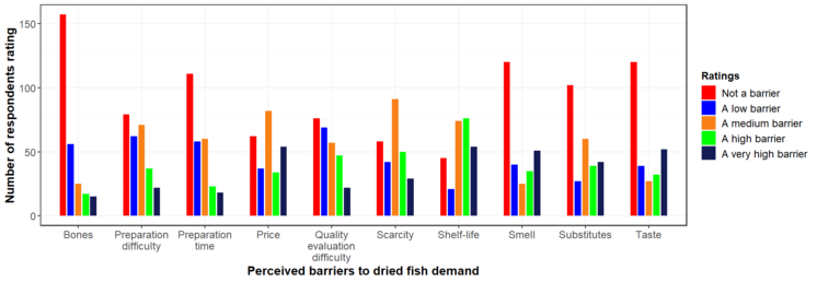 Figure 22. Barriers to the demand for dried fish and their ratings provided by the respondents.