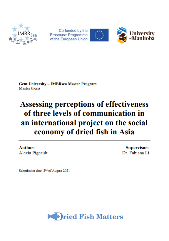 Pigeault, A. (2021). Assessing perceptions of effectiveness of three levels of communication in an international project on the social economy of dried fish in Asia [Master’s thesis]. Ghent University and University of Manitoba.