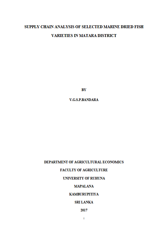 Bandara, V. G. S. P. (2017). Supply chain analysis of selected marine dried fish varieties in Matara District [Undergraduate Thesis]. University of Ruhuna, Matara.